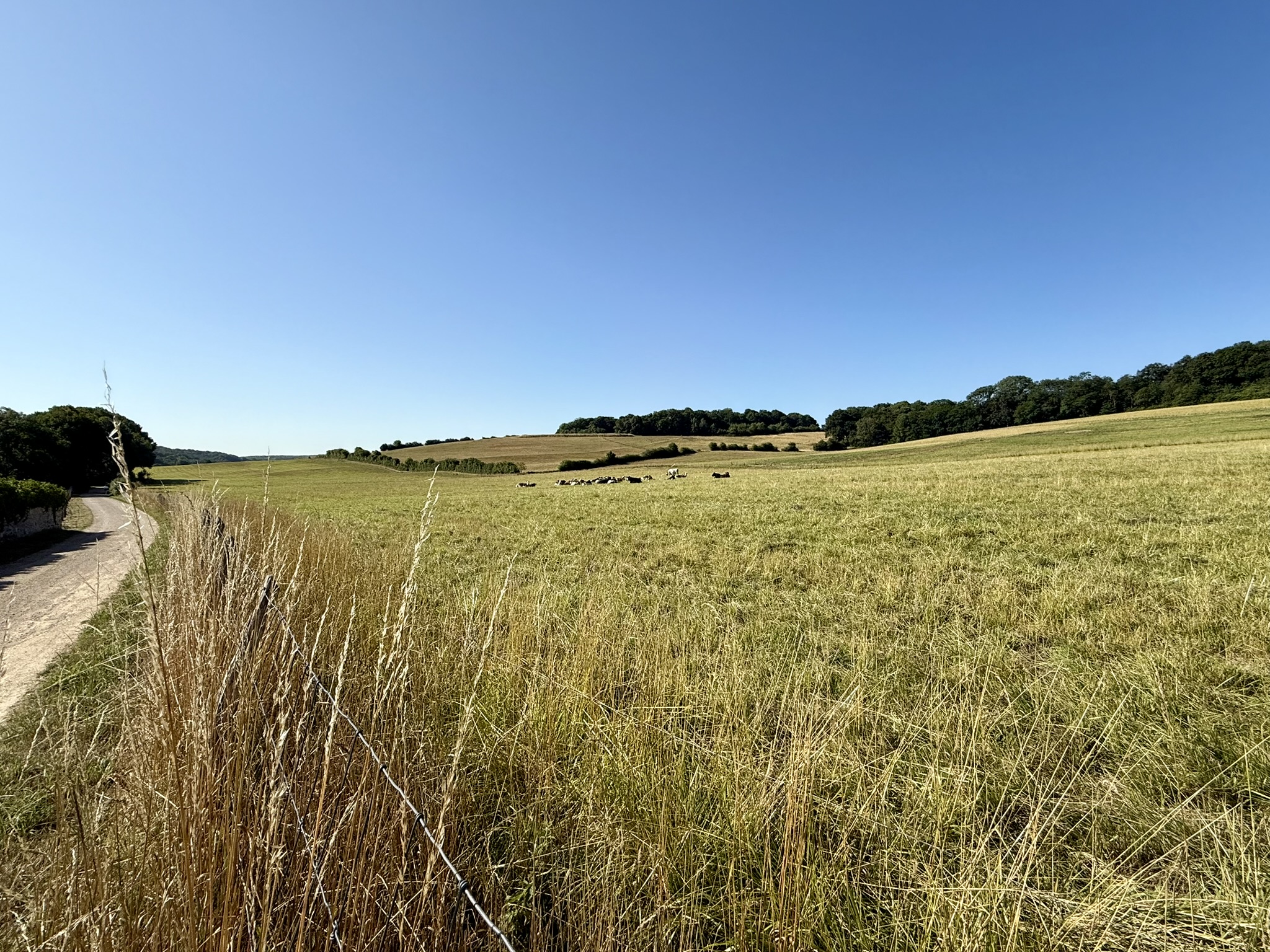 S’en suit une section nettement moins intéressante, mais obligatoire, pour rallier le prochain point d’intérêt de la randonnée. Cette section de la randonnée se déroule d’abord en lisière de forêt, puis plus franchement au soleil à travers les champs (cagnard garanti en été par forte chaleur !)