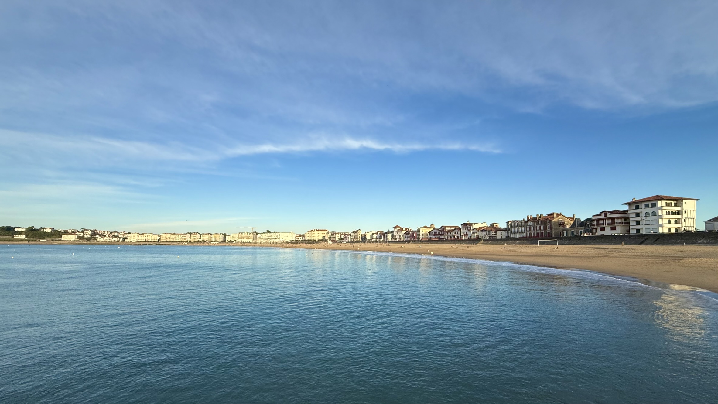 Plus loin, les rochers font place à la très grande plage d’Hendaye, qui s’étend sur plus de 3 km ! Une très belle plage de sable fin, comme vous pouvez le voir ci-dessous.
