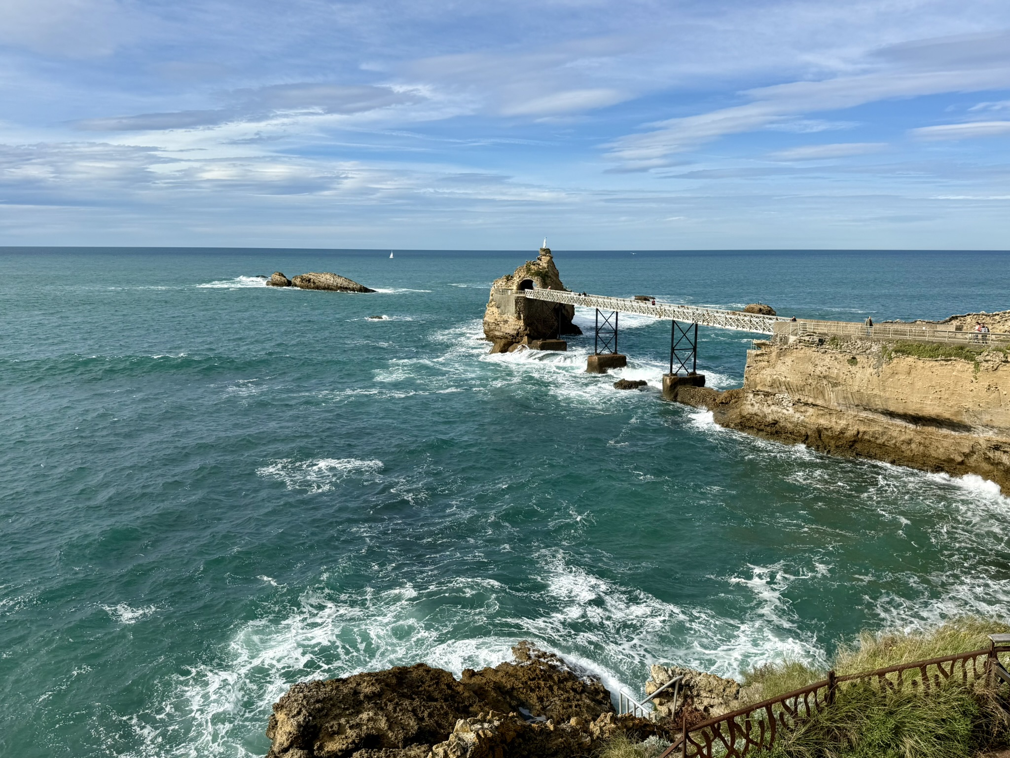 Après une vingtaine de kilomètres et près de 4h de marche, j’atteins enfin le rocher de la Vierge, lieu incontournable de Biarritz, sur lequel orne une statue de la Vierge, précisément.